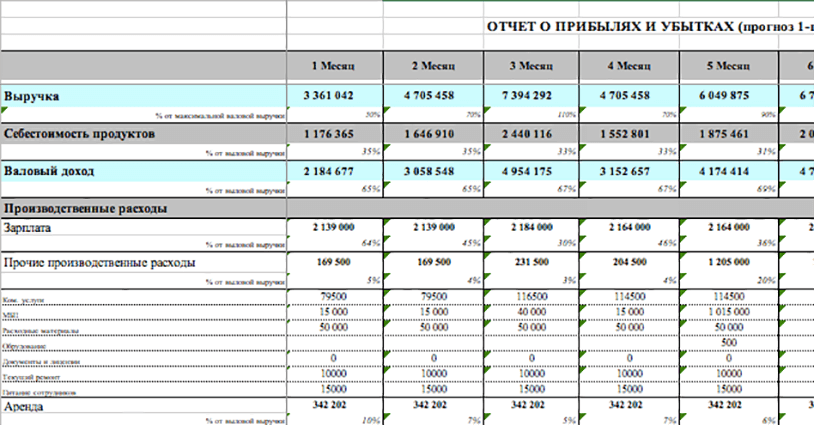 - Динамика окупаемости затрат – рассчитывается в зависимости от прогнозируемого уровня прибыли каждого месяца. В итоге даёт срок возврата инвестиций.